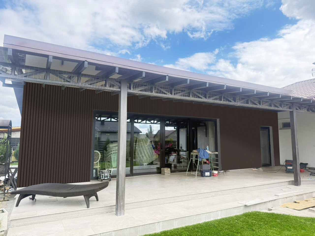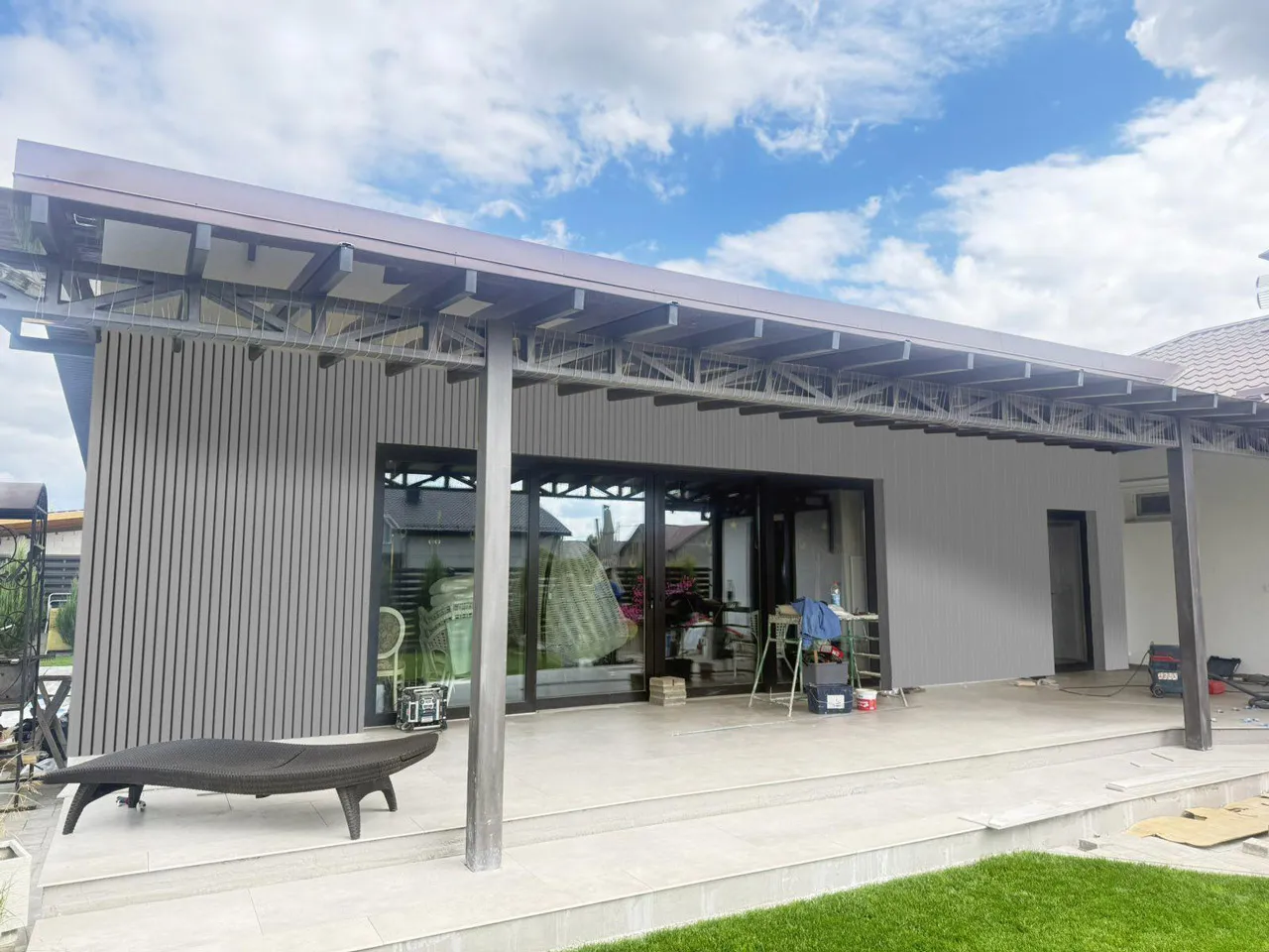Выполнить облицовку фасада дома при помощи универсальных 3D-панелей ДПК.