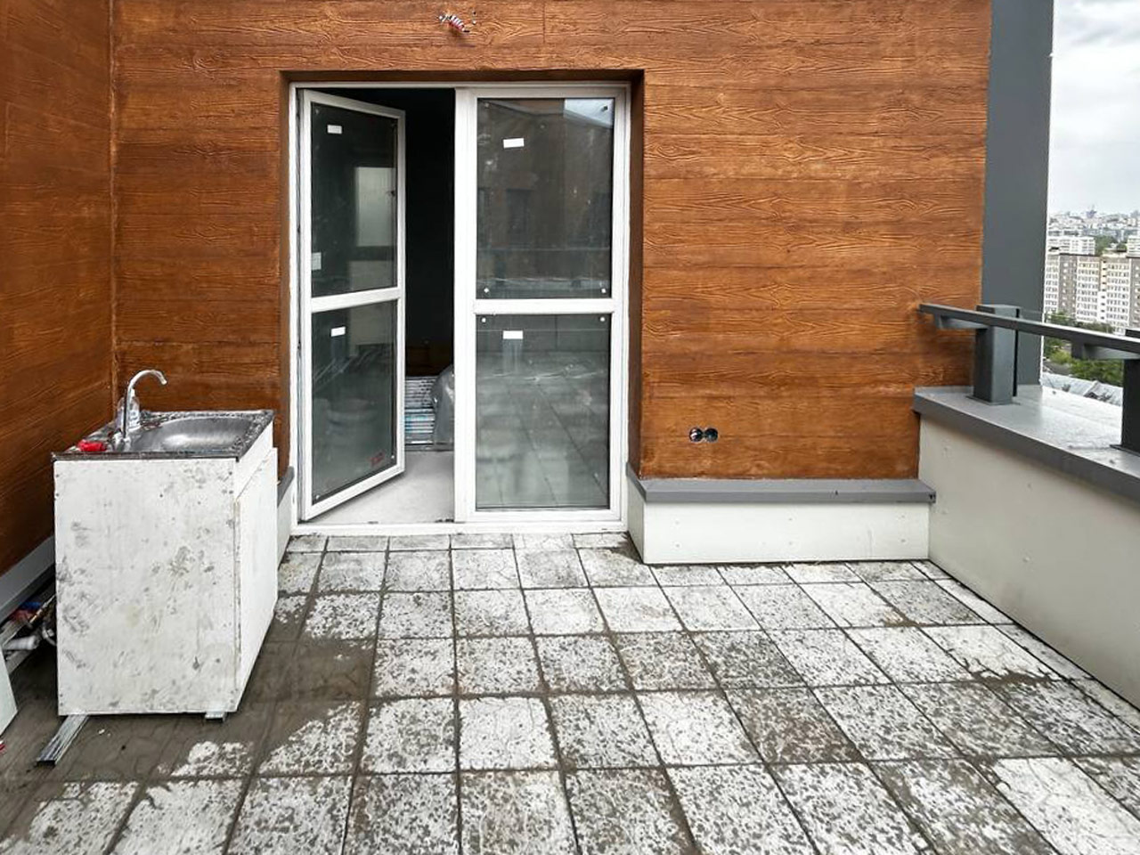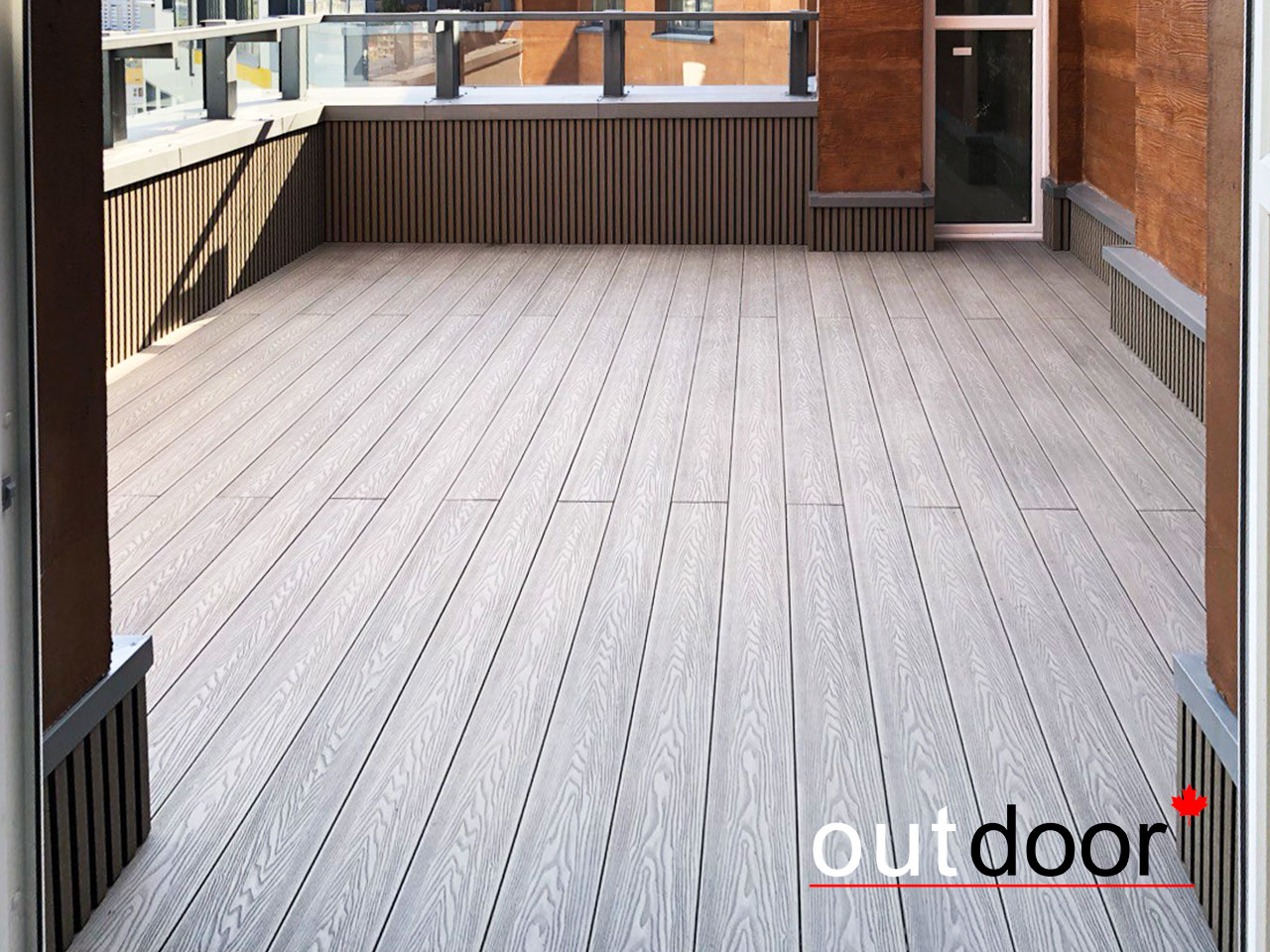 Заменить старое покрытие из плитки на террасную доску из ДПК, а также выполнить частичную облицовку фасада универсальными 3D-панелями из ДПК.