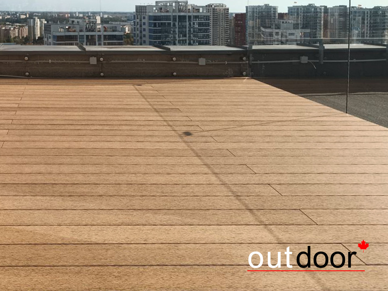 Построить на эксплуатируемой кровле здания террасу из доски Outdoor Dual Co-extrusion на подсистеме регулируемых опор KRONEX.