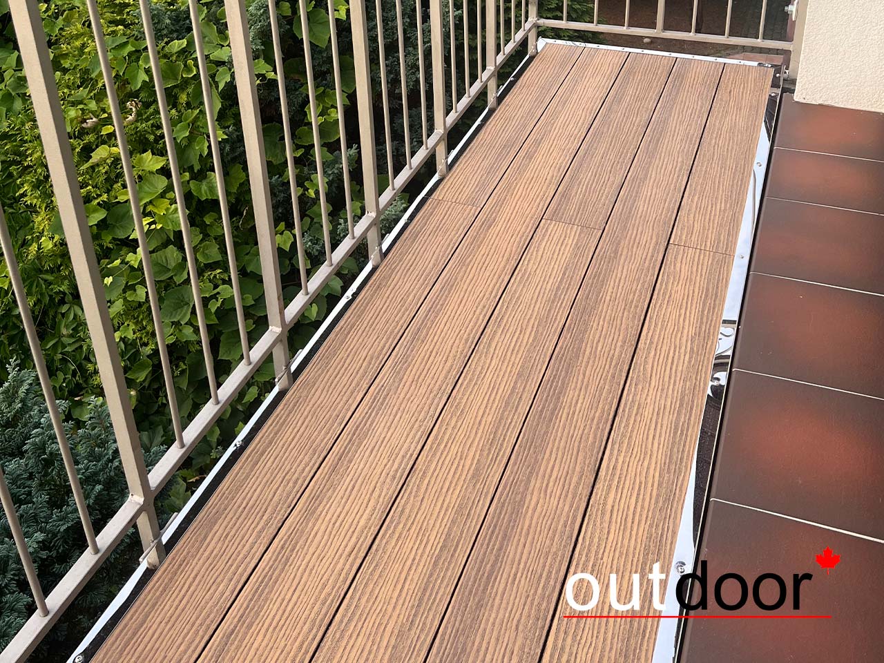 Обустроить настил балкона из террасной доски ДПК Dual Co-extrusion.
