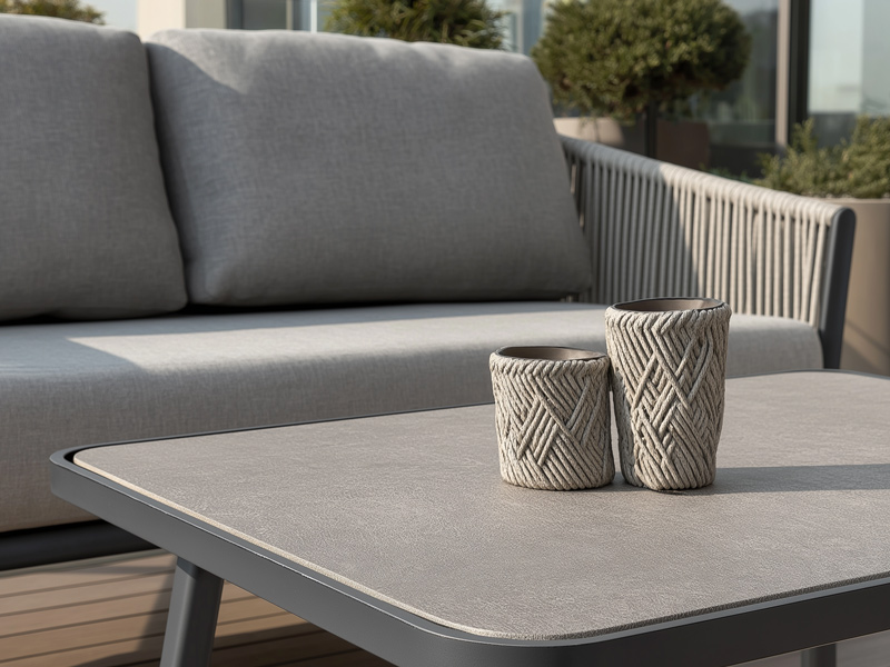 Главный акцент компактного и стильного комплекта АЛИКАНТЕ — изысканное плетение роупа, которое придаёт подлокотникам и спинкам мягкую тактильную выразительность.