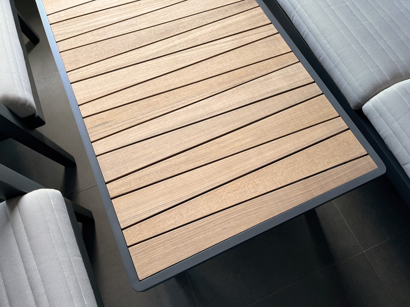 - Состав: Алюминий, олефиновая ткань, дерево тик