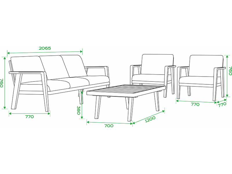 Трехместный диван 770×2065×760 мм