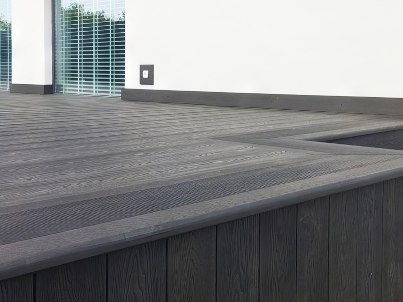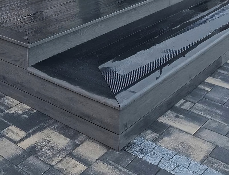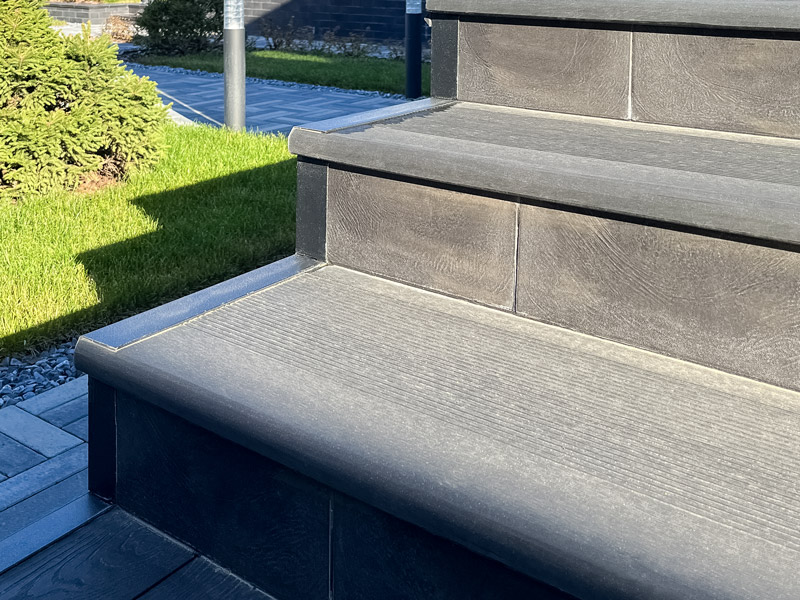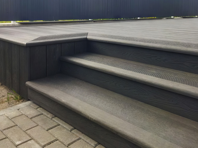 Ступени образуют единый архитектурный стиль с другими изделиями из ДПК.