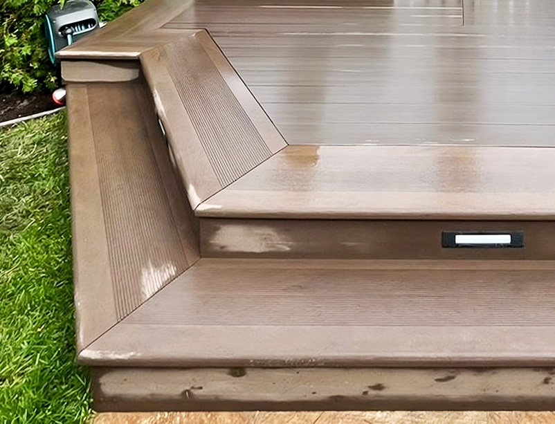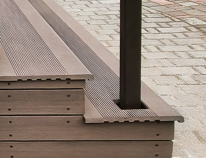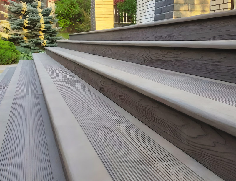 Ступени образуют единый архитектурный стиль с другими изделиями из ДПК.