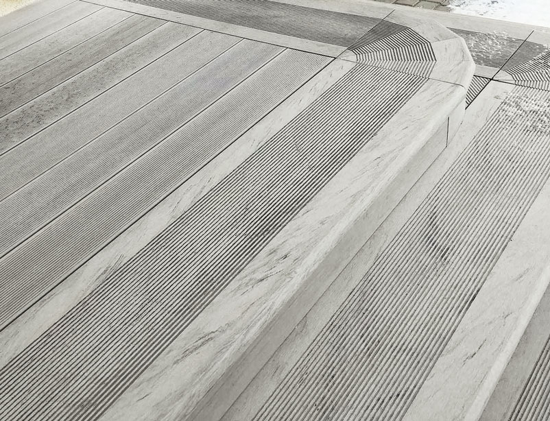 Ступени образуют единый архитектурный стиль с другими изделиями из ДПК.