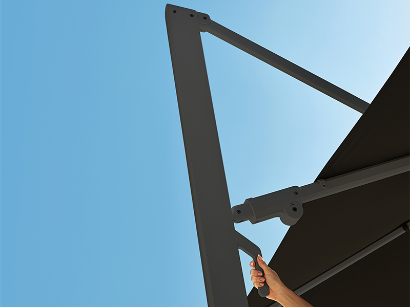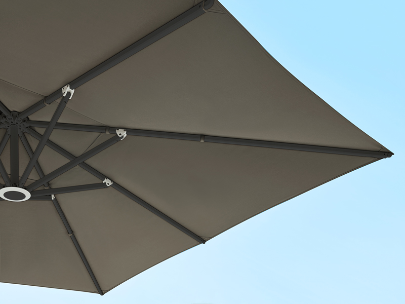 Большой купол 3×3 метра создает внушительную по площади тень, защищая от солнца и осадков.